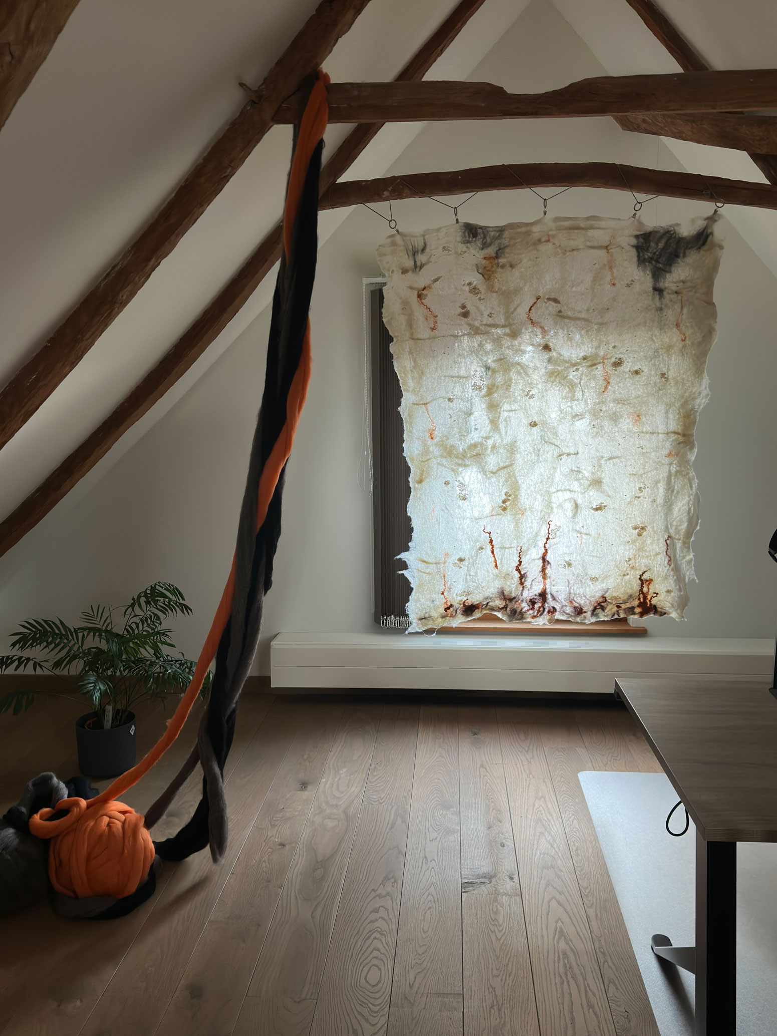 Bij mijn nieuwe passie, het vilten, breng ik mijn creativiteit tot leven met unieke viltschilderijen. Elk viltschilderij wordt met intuïtie en zorg gemaakt. Daarbij gebruik ik ook mijn ervaring als grafisch vormgever om jouw visie om te zetten in een mooi vilt-art-paneel dat bij jou en/of jouw bedrijf past. Het dempende effect van vilt kan de akoestiek in huis of kantoor enorm verbeteren. Door het viltschilderij te vullen met vulwol wordt dit effect versterkt.